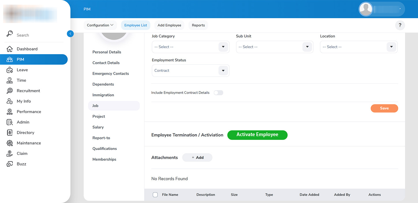 1. Open the record of the employee you wish to reactivate and go to the job details section.