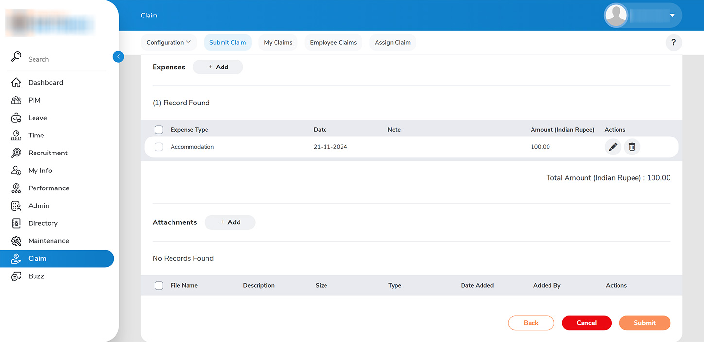 Administrators can review employee expense claims submitted to them under the CLAIM > EMPLOYEE CLAIMS tab.